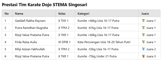 Prestasi ini menjadi bukti nyata bahwa Ekskul Karate SMKN 1 Singosari mampu mencetak atlet-atlet berprestasi yang siap bersaing di tingkat nasional. Diharapkan, keberhasilan ini dapat menjadi inspirasi bagi siswa-siswi lainnya untuk terus berlatih dan mengembangkan kemampuan di bidang olahraga, khususnya karate.