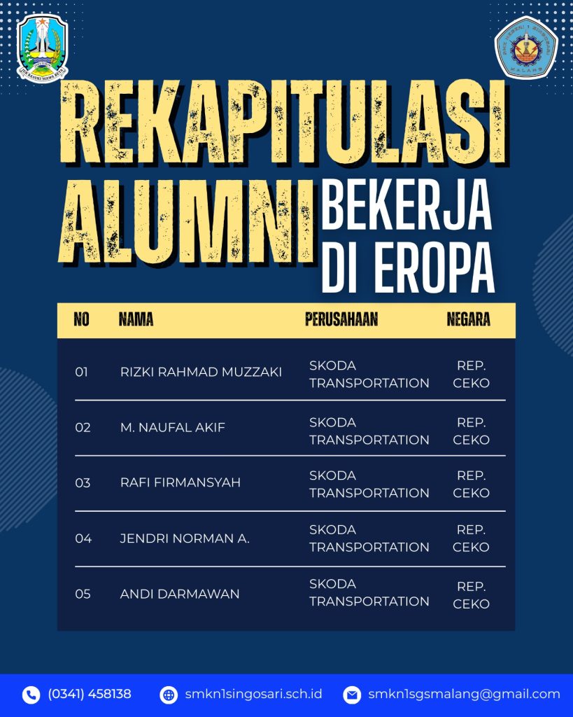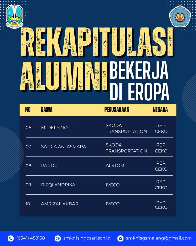 Berikut daftar alumni Teknik Pengelasan SMKN 1 Singosari yang berkarya di Eropa: