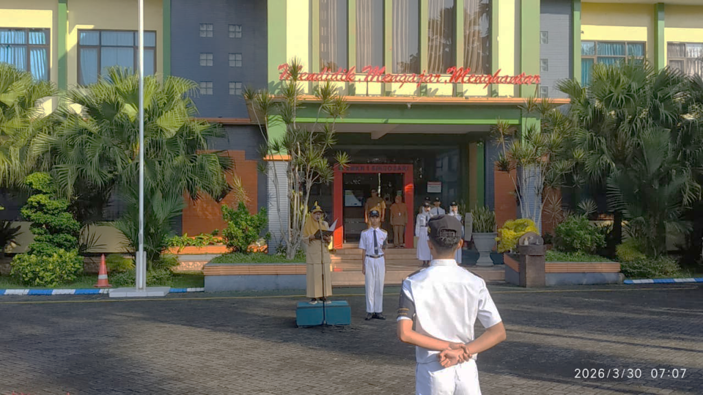 SMKN 1 Singosari mengawali hari pertama masuk sekolah setelah libur panjang Ramadhan dan Idul Fitri dengan penuh khidmat dan kebersamaan pada Senin, 30 Maret 2026. Kegiatan diawali dengan pelaksanaan upacara bendera yang diikuti oleh seluruh siswa, guru, serta staf karyawan di halaman sekolah.