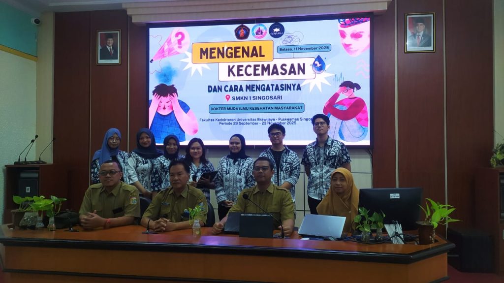 Kegiatan Tindak Lanjut Hasil Cek Kesehatan Gratis (CKG) dengan tema “CEMРАКА: Cerdas Emosional Menuju Pelajar Anti Cemas” kembali digelar di SMKN 1 Singosari sebagai bentuk kepedulian terhadap kesehatan mental dan emosional para pelajar. Program ini dilaksanakan oleh Dokter Muda dari Ilmu Kesehatan Masyarakat Universitas Brawijaya Malang yang sedang bertugas di Puskesmas Singosari. Kegiatan ini merupakan kelanjutan dari tahap pemeriksaan awal yang sebelumnya telah dilakukan kepada siswa.