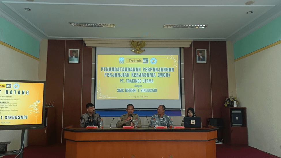Seiring dengan berakhirnya pelaksanaan akreditasi PT. Trakindo Utama di Teknik Alat Berat (TAB) beberapa waktu lalu, Pada tanggal 31 Juli 2023 SMK Negeri 1 Singosari menyelenggarakan penandatanganan Perpanjangan Perjanjian Kerjasama (MoU) dengan PT. Trakindo Utama di Ruang Rapat Utama. Kegiatan ini dihadiri oleh Bapak Wahyu Setiobroto selaku Branch Manager PT. Trakindo Utama  Wilayah Surabaya, Bapak M.Rizky Aziz selaku HRD PT. Trakindo Utama, Bapak Mega Slino selaku Custodian Co-op PT. Trakindo Utama beserta tim manajemen dan Bapak/Ibu Pengajar Teknik Alat Berat SMK Negeri 1 Singosari.
