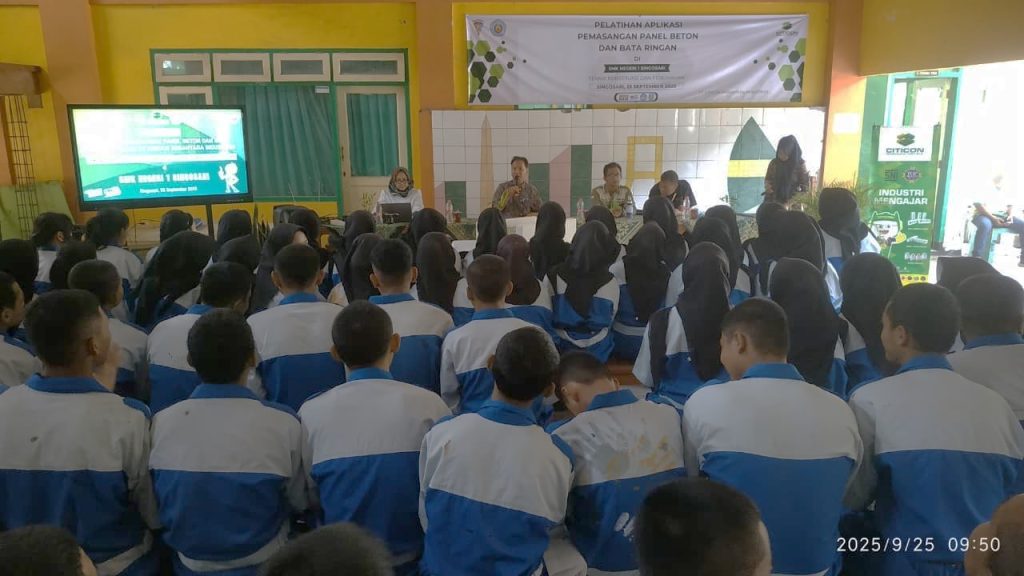 Kegiatan yang berlangsung di bengkel batu dan beton jurusan Teknik Konstruksi dan Perumahan (TKP) ini diikuti oleh siswa kelas XI dengan penuh antusias. Kehadiran tim dari PT. Citicon Nusantara Industries menjadi momen berharga bagi siswa untuk memperoleh wawasan terkini mengenai perkembangan teknologi bahan bangunan, khususnya produk autoclaved aerated concrete (AAC) dan inovasi material ramah lingkungan.
