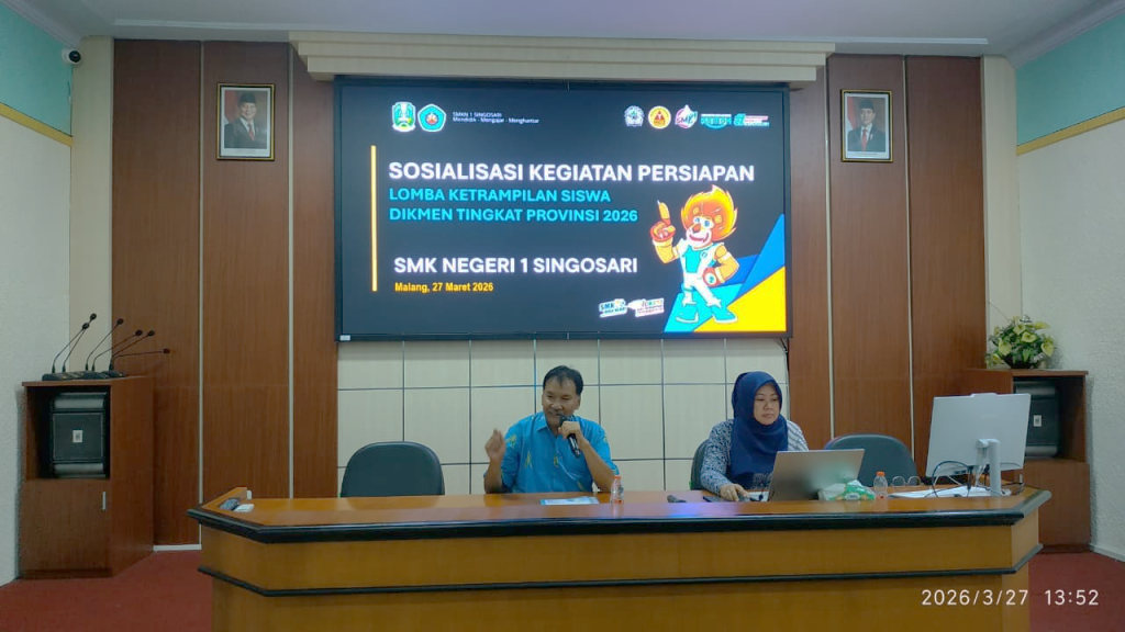 Malang, 27 Maret 2026 – SMKN 1 Singosari menggelar rapat koordinasi dalam rangka persiapan menghadapi Lomba Keterampilan Siswa (LKS) Dikmen Tingkat Provinsi Tahun 2026 yang akan berlangsung pada tanggal 3–10 April 2026. Rapat ini dilaksanakan sebagai langkah strategis untuk memastikan kesiapan seluruh peserta dan tim pendamping dari berbagai bidang lomba.